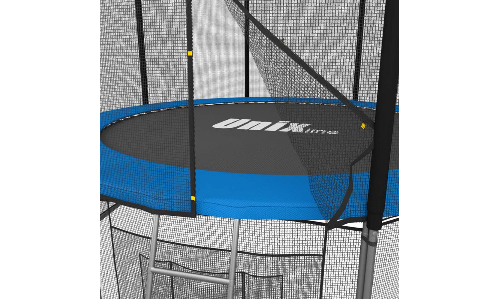 Помимо верхней защитной сетки, все батуты модельного ряда UNIX line оборудованы нижней защитной сеткой, которая препятствует проникновению под прыжковое полотно батута детей, животных, а так же попаданию посторонних предметов, и лестницей для удобства пользования. А в моделях диаметром от 10FT (305см.), в комплект входят специальные крепления батута к земле (колышки).